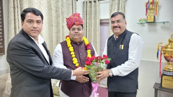 *केकड़ी, 29 अगस्त,बार एसोसिएशन केकड़ी के अध्यक्ष मनोज आहूजा ने शुक्रवार को नव पदस्थापित जिला एवं सेशन न्यायाधीश विक्रांत गुप्ता से शिष्टाचार भेंट कर उनका माला व साफा पहनाकर तथा बुके भेंट कर अभिनन्दन किया व केकड़ी पधारने का निमंत्रण दिया।इस मौके पर जिला बार के अध्यक्ष अशोक सिंह रावत भी मौजूद रहे जिन्होंने केकड़ी बार एसोसिएशन की तारीफ करते हुए कहा कि केकड़ी में बार व बैंच का अद्भुत सामंजस्य देखने को मिलता है।इस मौके पर जिला न्यायाधीश विक्रांत गुप्ता ने बार और बैंच के सांमजस्य से नए कीर्तिमान बनाने की बात कहते हुए कहा कि ग्रास रुट पर काम करने वाले अधिवक्ता का समाज में महत्वपूर्ण योगदान होता है वो पीड़ितों की ईमानदारी से हरसम्भव मदद करते हैं जो सबसे बड़ा पुनीत कार्य है,उन्होंने कहा कि आने वाली 13 सितंबर को लोक अदालत में ज्यादा से ज्यादा मामलों का निस्तारण करवाएं।इसके साथ ही जिला न्यायाधीश गुप्ता ने कहा कि समाज को जागरूक करने में वकीलों की महत्त्वपूर्ण भूमिका होती है।